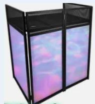 All of our equipment is black in colour. Our DJ booth is also black in colour and we would use this for most parties apart from wedding receptions where we can change the front to white and have a colour scheme with lighting effects added should you require.